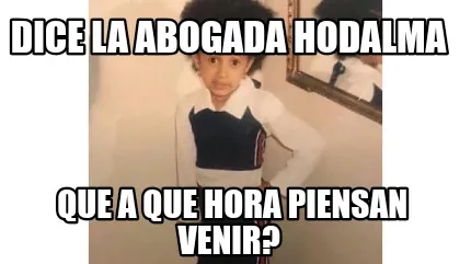 Make your own "Dice la abogada Hodalma Que a que hora piensan venir?" meme with MemeCreator's free online meme generator. Add text, stickers, and drawings — then download or share. No watermark, no sign-up required.