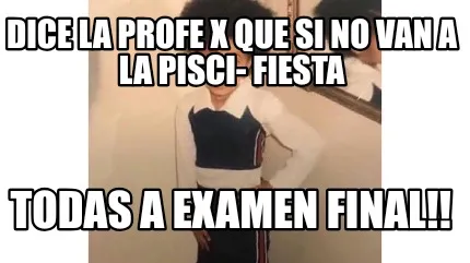 Create Dice la profe X que si no van a la pisci- fiesta Todas a examen final!! Meme