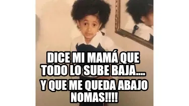 Make your own "Dice mi mamá que todo lo Sube Baja.... Y que me queda Abajo nomas!!!!" meme with MemeCreator's free online meme generator. Add text, stickers, and drawings — then download or share. No watermark, no sign-up required.