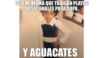 Create Dice mi mamá que traigan platos desechables para sopa Y aguacates Meme