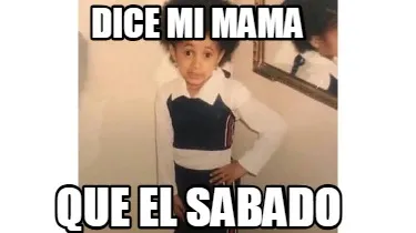 Make your own "Dice mi mama que el sabado" meme with MemeCreator's free online meme generator. Add text, stickers, and drawings — then download or share. No watermark, no sign-up required.