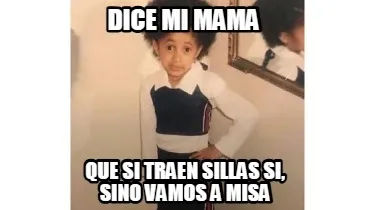 Make your own "Dice mi mama que si traen sillas si, sino vamos a misa" meme with MemeCreator's free online meme generator. Add text, stickers, and drawings — then download or share. No watermark, no sign-up required.
