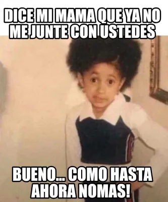 Make your own "Dice mi mama que ya no me junte con ustedes Bueno... como hasta ahora nomas!" meme with MemeCreator's free online meme generator. Add text, stickers, and drawings — then download or share. No watermark, no sign-up required.