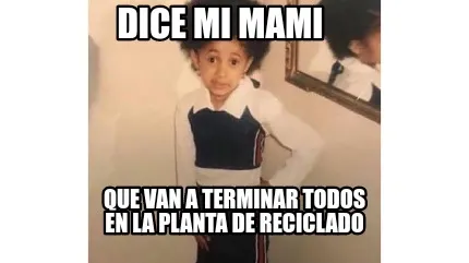 Make your own "Dice mi mami Que van a terminar todos en la planta de reciclado" meme with MemeCreator's free online meme generator. Add text, stickers, and drawings — then download or share. No watermark, no sign-up required.
