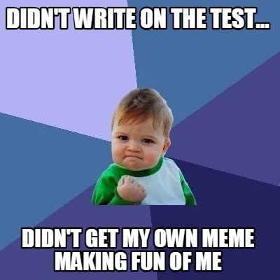 Didn't write on the test... Didn't get my own Meme Template