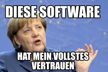 Make your own "Diese Software hat mein vollstes Vertrauen" meme with MemeCreator's free online meme generator. Add text, stickers, and drawings — then download or share. No watermark, no sign-up required.