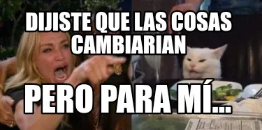 Make your own "Dijiste que las cosas cambiarian Pero para mí..." meme with MemeCreator's free online meme generator. Add text, stickers, and drawings — then download or share. No watermark, no sign-up required.