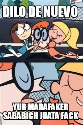 Make your own "Dilo de nuevo Yur madafaker sababich juata fack" meme with MemeCreator's free online meme generator. Add text, stickers, and drawings — then download or share. No watermark, no sign-up required.