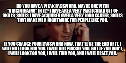 Do you have a weak password, maybe one with "virgintrains" in it? I have are a v Meme Template