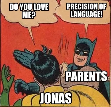 Do you love me? Precision of language! Jonas Parents Meme Template