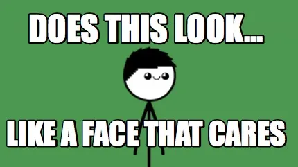 Make your own "Does this look... like a face that cares" meme with MemeCreator's free online meme generator. Add text, stickers, and drawings — then download or share. No watermark, no sign-up required.