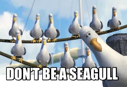 Make your own "Funny Don’t be a seagull" meme with MemeCreator's free online meme generator. Add text, stickers, and drawings — then download or share. No watermark, no sign-up required.