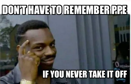 Make your own "Don’t have to remember ppe If you never take it off" meme with MemeCreator's free online meme generator. Add text, stickers, and drawings — then download or share. No watermark, no sign-up required.