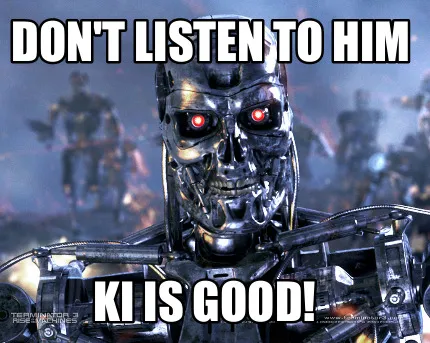 Make your own "Don't listen to him KI is good!" meme with MemeCreator's free online meme generator. Add text, stickers, and drawings — then download or share. No watermark, no sign-up required.
