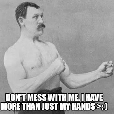Make your own "Don't mess with me. i have more than just my hands >: )" meme with MemeCreator's free online meme generator. Add text, stickers, and drawings — then download or share. No watermark, no sign-up required.