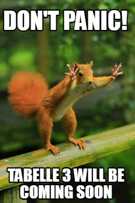 Funny DON'T PANIC! Tabelle 3 will be coming soon Meme Template