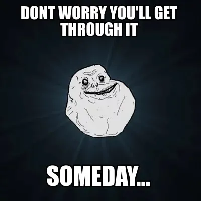 Make your own "Dont worry you'll get through it someday..." meme with MemeCreator's free online meme generator. Add text, stickers, and drawings — then download or share. No watermark, no sign-up required.