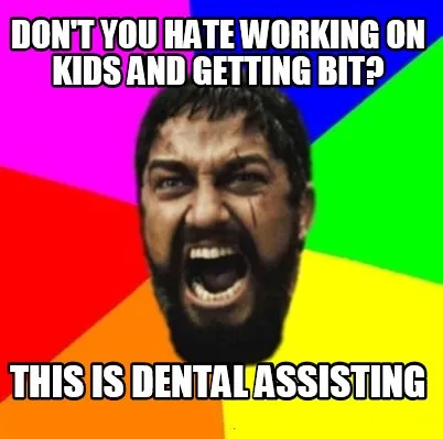 Create Don't you hate working on kids and getting bit? THIS IS DENTAL ASSISTING Meme