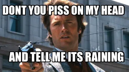 Make your own "Dont you piss on my head And tell me its raining" meme with MemeCreator's free online meme generator. Add text, stickers, and drawings — then download or share. No watermark, no sign-up required.