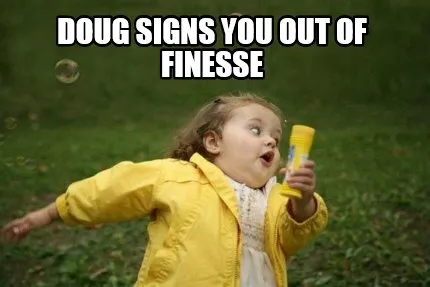 Make your own "Funny Doug signs you out of finesse" meme with MemeCreator's free online meme generator. Add text, stickers, and drawings — then download or share. No watermark, no sign-up required.