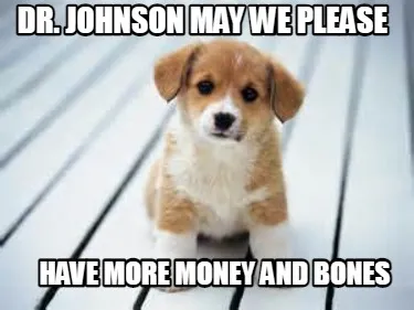 Create Funny Dr. Johnson May we please have more money and bones Meme
