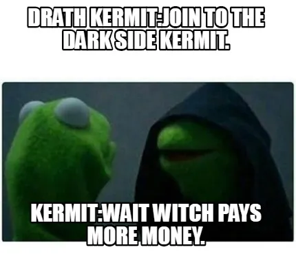Make your own "Funny Drath kermit:Join to the dark side Kermit. Kermit:wait witch pays more money." meme with MemeCreator's free online meme generator. Add text, stickers, and drawings — then download or share. No watermark, no sign-up required.