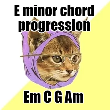 Make your own "Funny E minor chord progression Em C G Am" meme with MemeCreator's free online meme generator. Add text, stickers, and drawings — then download or share. No watermark, no sign-up required.