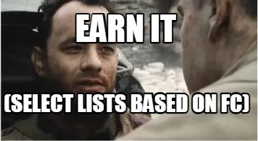 Make your own "Funny Earn it (select lists based on fc)" meme with MemeCreator's free online meme generator. Add text, stickers, and drawings — then download or share. No watermark, no sign-up required.