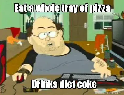 Create Funny Eat a whole tray of pizza Drinks diet coke Meme