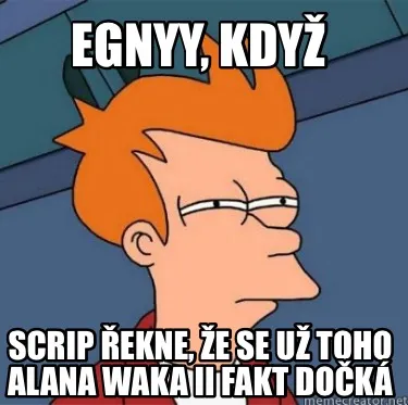 Make your own "Egnyy Kdy Scrip Ekne E Se U Toho Alana Waka Ii Fakt Dok" meme with MemeCreator's free online meme generator. Add text, stickers, and drawings — then download or share. No watermark, no sign-up required.