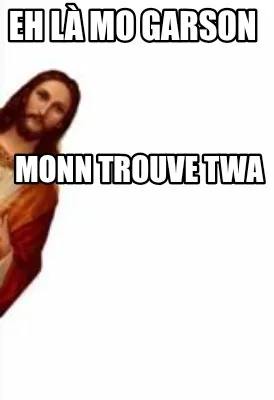 Make your own "Eh là mo garson Monn trouve twa" meme with MemeCreator's free online meme generator. Add text, stickers, and drawings — then download or share. No watermark, no sign-up required.
