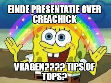 Create Funny Einde presentatie over Creachick vragen???? tips of tops? Meme