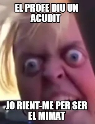 Make your own "El profe diu un acudit jo rient-me per ser el mimat" meme with MemeCreator's free online meme generator. Add text, stickers, and drawings — then download or share. No watermark, no sign-up required.