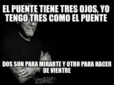 Make your own "El puente tiene tres ojos, yo tengo tres como el puente Dos son para mirarte y o" meme with MemeCreator's free online meme generator. Add text, stickers, and drawings — then download or share. No watermark, no sign-up required.