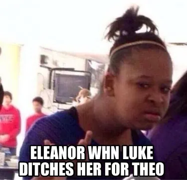 Make your own "Funny eleanor whn luke ditches her for theo" meme with MemeCreator's free online meme generator. Add text, stickers, and drawings — then download or share. No watermark, no sign-up required.