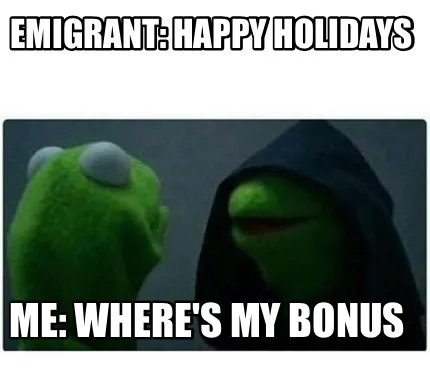 Create Emigrant: Happy Holidays Me: where's my bonus Meme