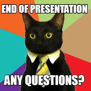 Create Funny ENd of presentation any questions? Meme