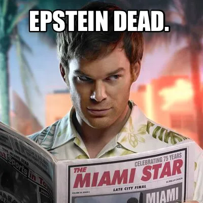 Make your own "Funny Epstein dead." meme with MemeCreator's free online meme generator. Add text, stickers, and drawings — then download or share. No watermark, no sign-up required.