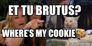 Funny ET TU BRUTUS? WHERE’S MY COOKIE ???? Meme Template