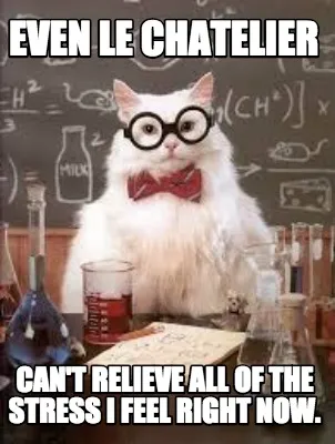 Make your own "Even LE CHATELIER Can't relieve all of the stress i feel right now." meme with MemeCreator's free online meme generator. Add text, stickers, and drawings — then download or share. No watermark, no sign-up required.
