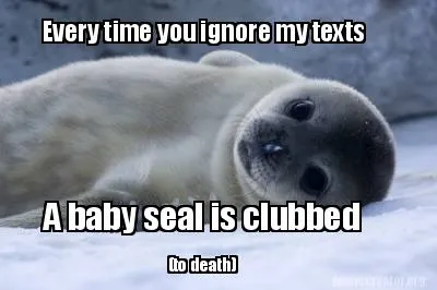 Create Funny Every time you ignore my texts A baby seal is clubbed (to death) Meme