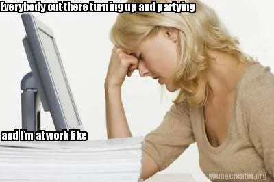 Create Everybody out there turning up and partying and I'm at work like Meme