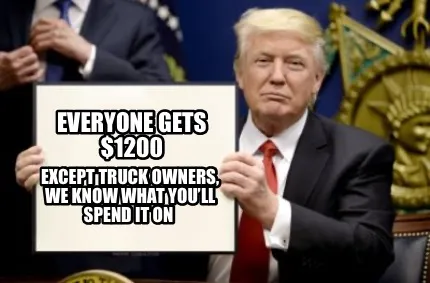 Create Everyone gets $1200 Except truck owners, we know what you’ll spend it on Meme