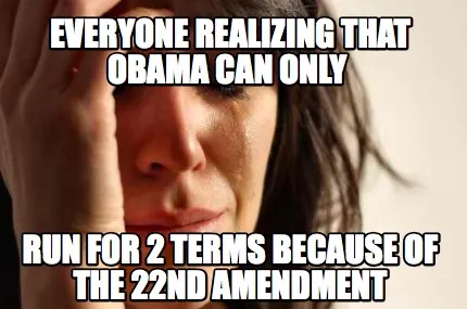 Create Everyone realizing that Obama can only run for 2 terms because of the 22nd amen Meme