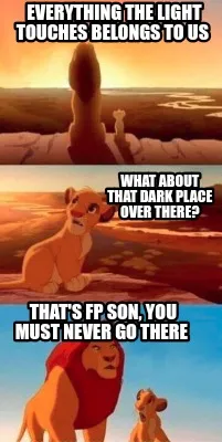 Everything the light touches belongs to us What about that dark place over ther Meme Template