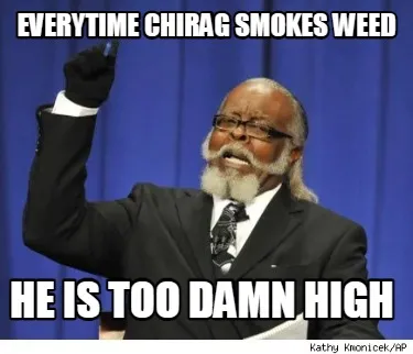 Everytime chirag smokes weed He is too damn high Meme Template