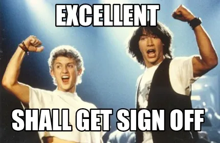 Make your own "Funny Excellent Shall get sign off" meme with MemeCreator's free online meme generator. Add text, stickers, and drawings — then download or share. No watermark, no sign-up required.