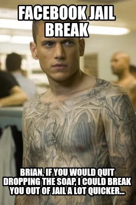 Facebook jail break Brian, if you would quit dropping the soap, I could break yo Meme Template