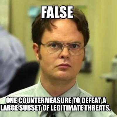 False One countermeasure to defeat a large subset of legitimate threats. Meme Template