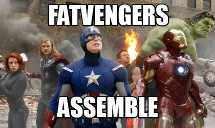 Make your own "Fatvengers Assemble" meme with MemeCreator's free online meme generator. Add text, stickers, and drawings — then download or share. No watermark, no sign-up required.